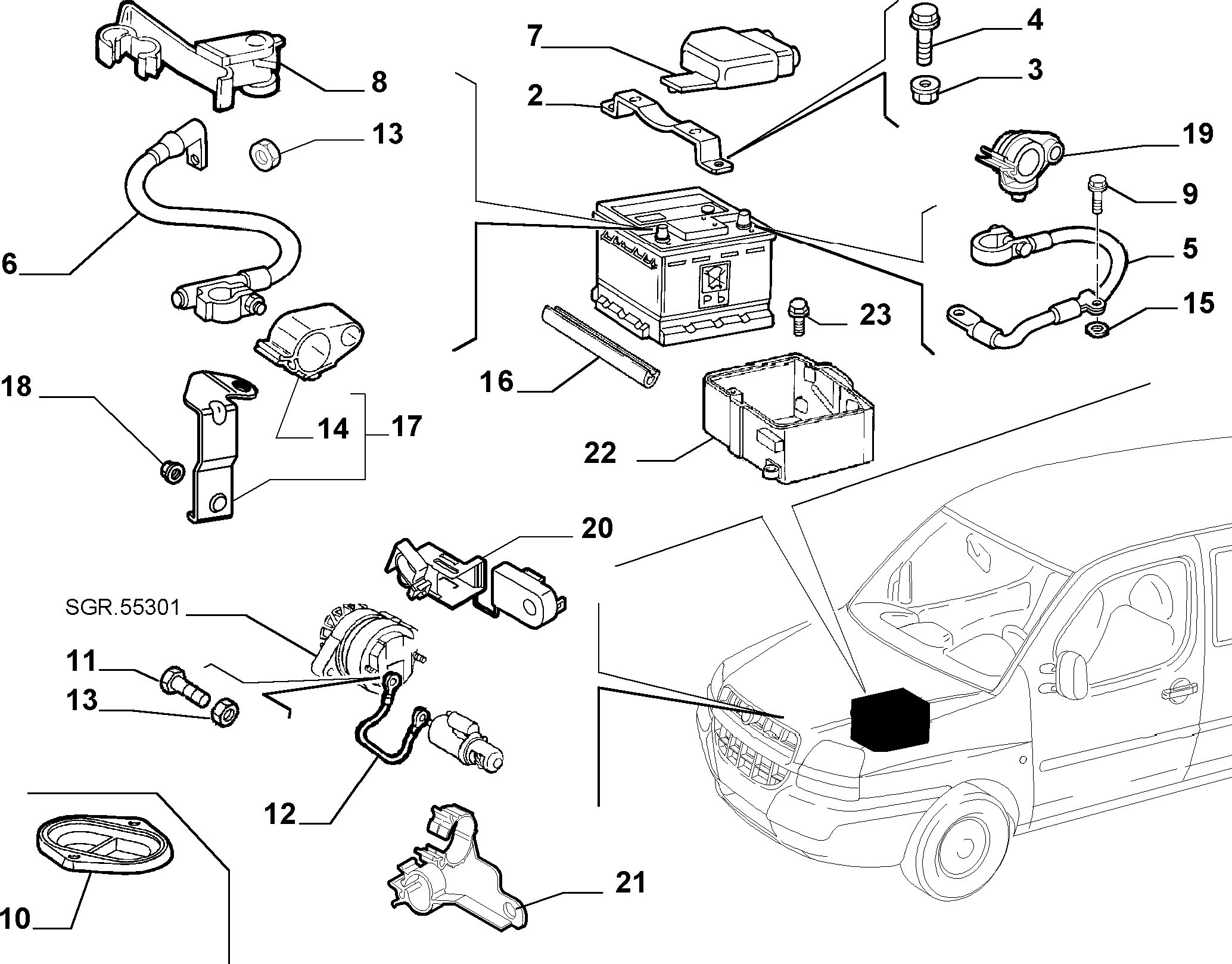 Интересно, завтра зафотаю где в моём Доблике прикручен, но у меня точно к мотору и это с завода.