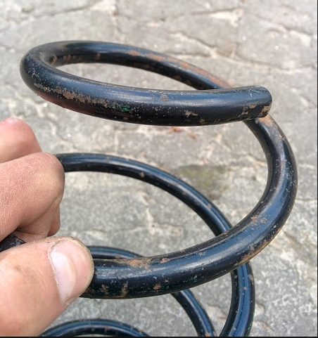 Отмыл пружину и пофоткал со всех сторон, подозреваю что они были заменены с модели кузов которой тяжелее или может с дизеля, говорят на дизелях пружины жёстче.. На витках видно цвета и на сколько я умею считать то витков 5, есть ещё маркировка (всё прикреплено на фото)