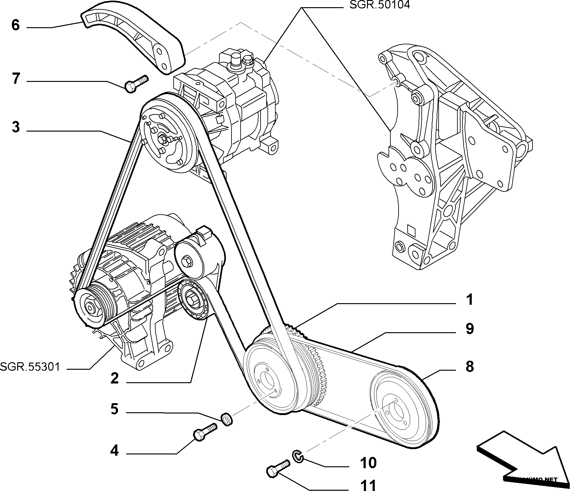 забиваем запрос по коду детали со схемы, деталь №1 - 55214114 - и опять первая же запись - шкив коленвала, смотрим внимательно на картинку того самого большого колеса с зубчиками и видим по середине резиновый демпфер.