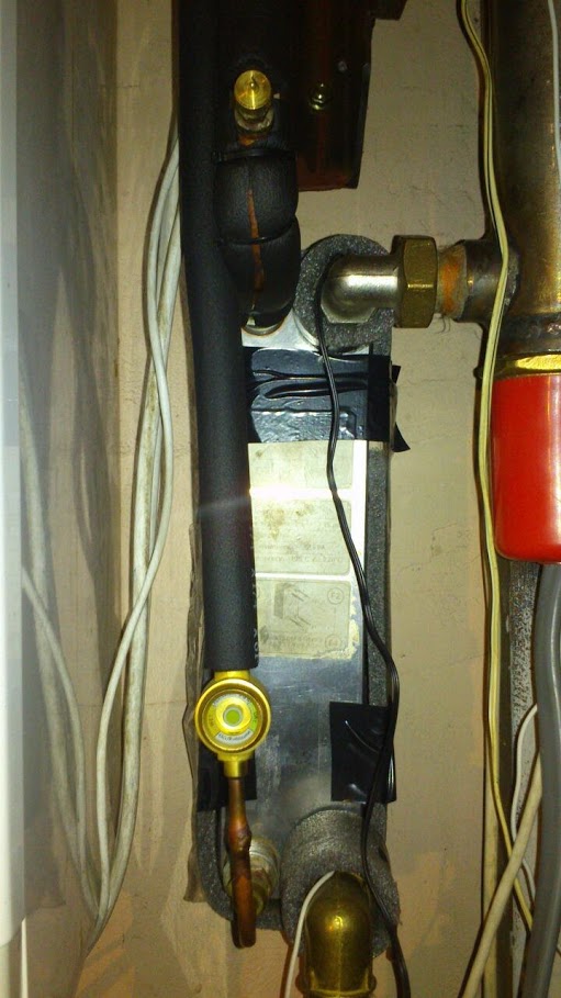 На фото Ви бачите теплообмінник телового насоса та електичний котел і як вони підєднані до системи опалення.