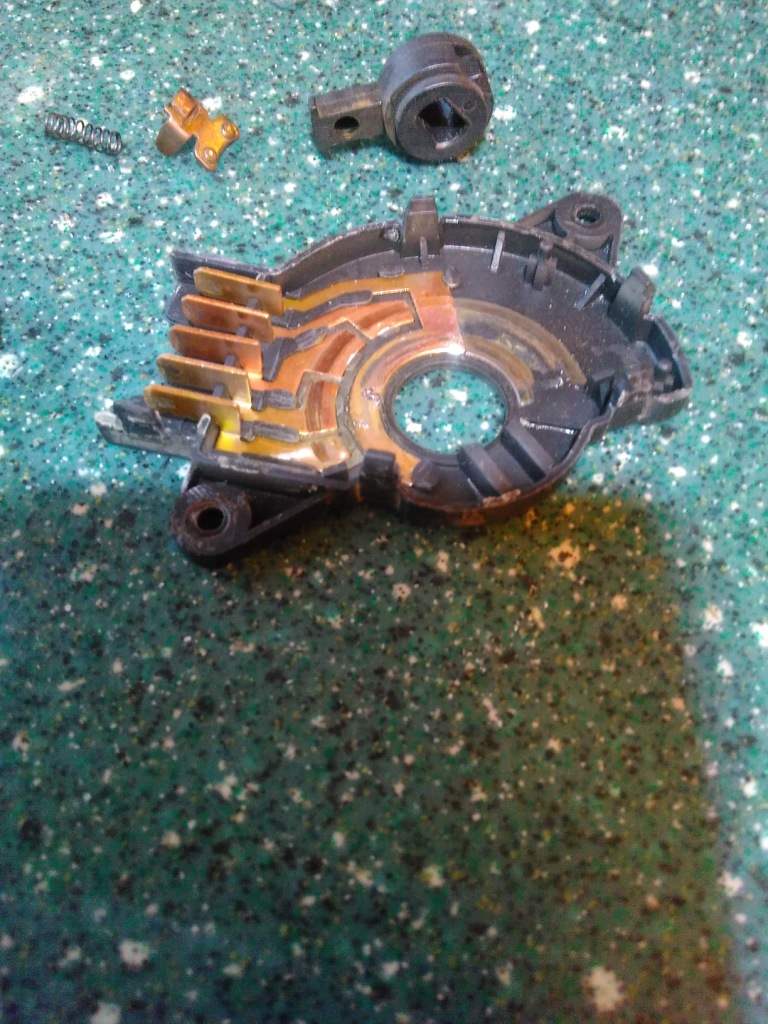 Отчитаюсь по переключателю. Добраться было совсем несложно, даже не отсоединял тяжки. В самой контактной группе под ползунок, для уплотнения видимо, кто-то подложил Омега-образное стопорное кольцо, которое в итоге стало видимо как-то не так и блокировало ползунок. Разборка и удаление последнего помогла. Всем спасибо.