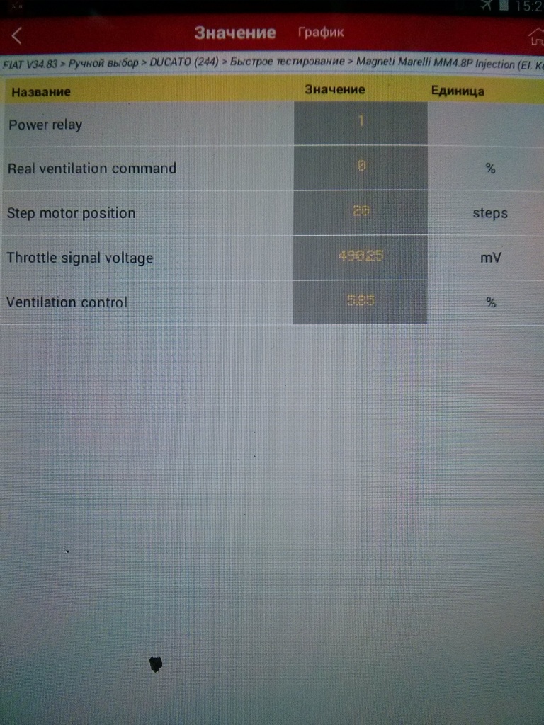 Сегодня пробовал покинуть резистор на 300 Ом вместо ДТОЖ и ничего не изменилось в плане впрыска и опережения. Вот фото что на сейчас, при диагностике была одна перегазовка: