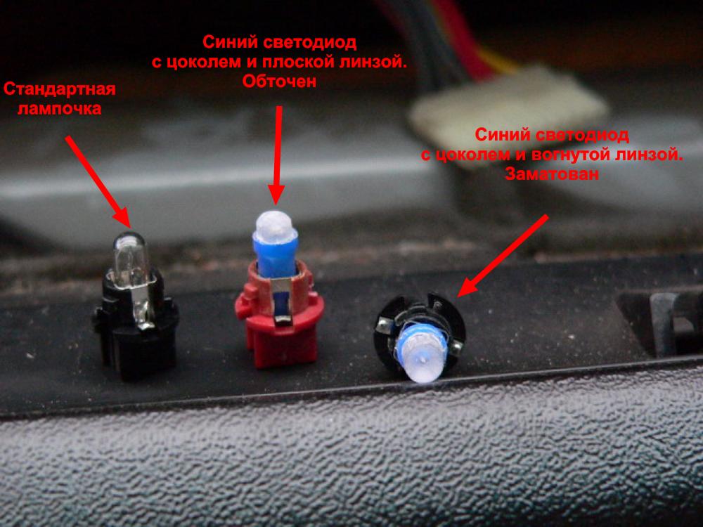 - стандартная лампочка 1,2 Ватта. Используется почти везде, т.е. на датчики, подсветку индикаторов и т.д.