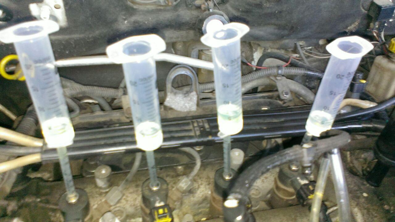 Померял обратку, чессно говоря я в сомнениях. За 10 секунд работы мотора результат на фото. Замечу, что не снимал шланг обратки с насоса, поэтому результаты могут быть недостоверными. Он в одной цепи с регулятором, поэтому тяжело судить, кто из них столько навалил. А вот форсы... как для 10 секунд работы мотора - многовато, не?