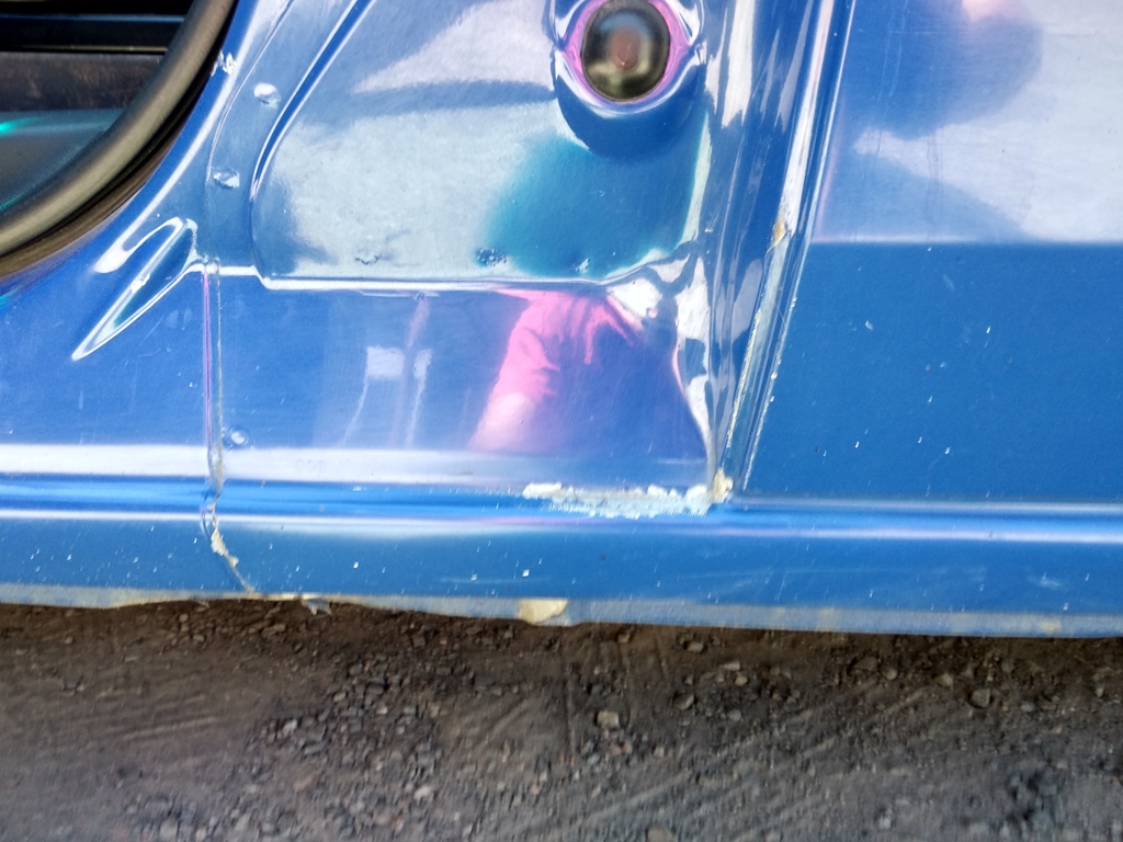 Правый бок, результат счеса троллейбусом. Замазывать "лаком для ногтей" считаю не комильфо. Если делать, так по-человечески. А потом наступнику еще и устранять кустарные подкрасы. Опять же меня не парит.