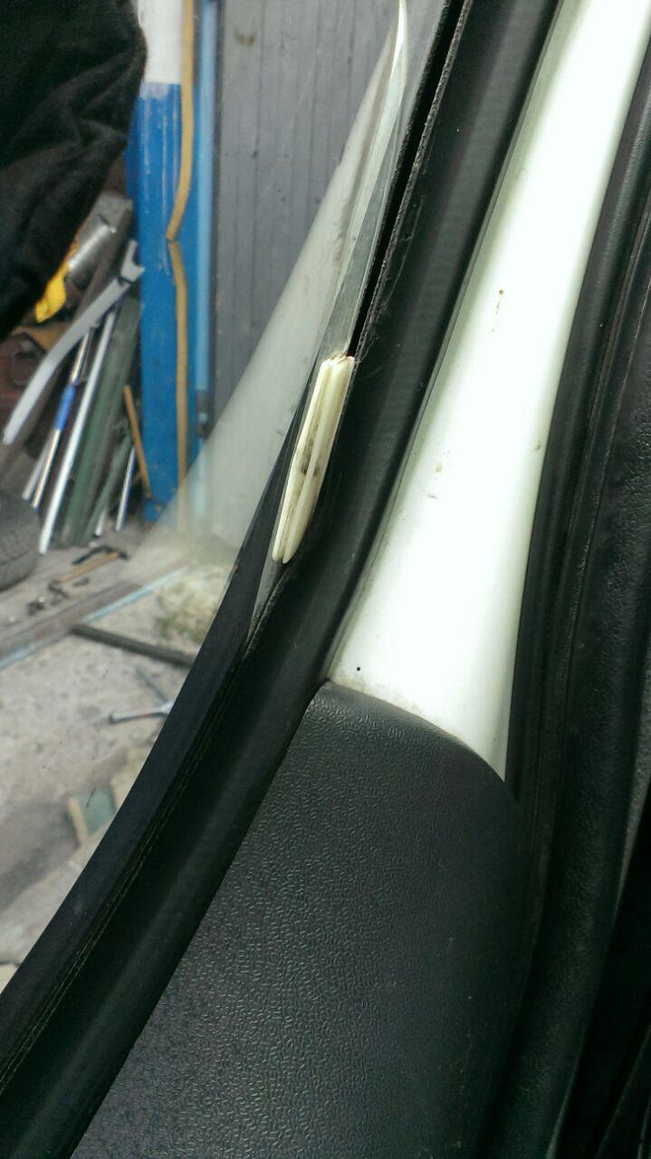 Кто - нибудь сталкивался с такой проблемой: при поднятии окна оно вываливается в сторону (фото прикрепил). Я так понимаю, что эта пластиковая белая хрень на стекле как - то вываливается из направляющей. Кто знает, как лечится?
