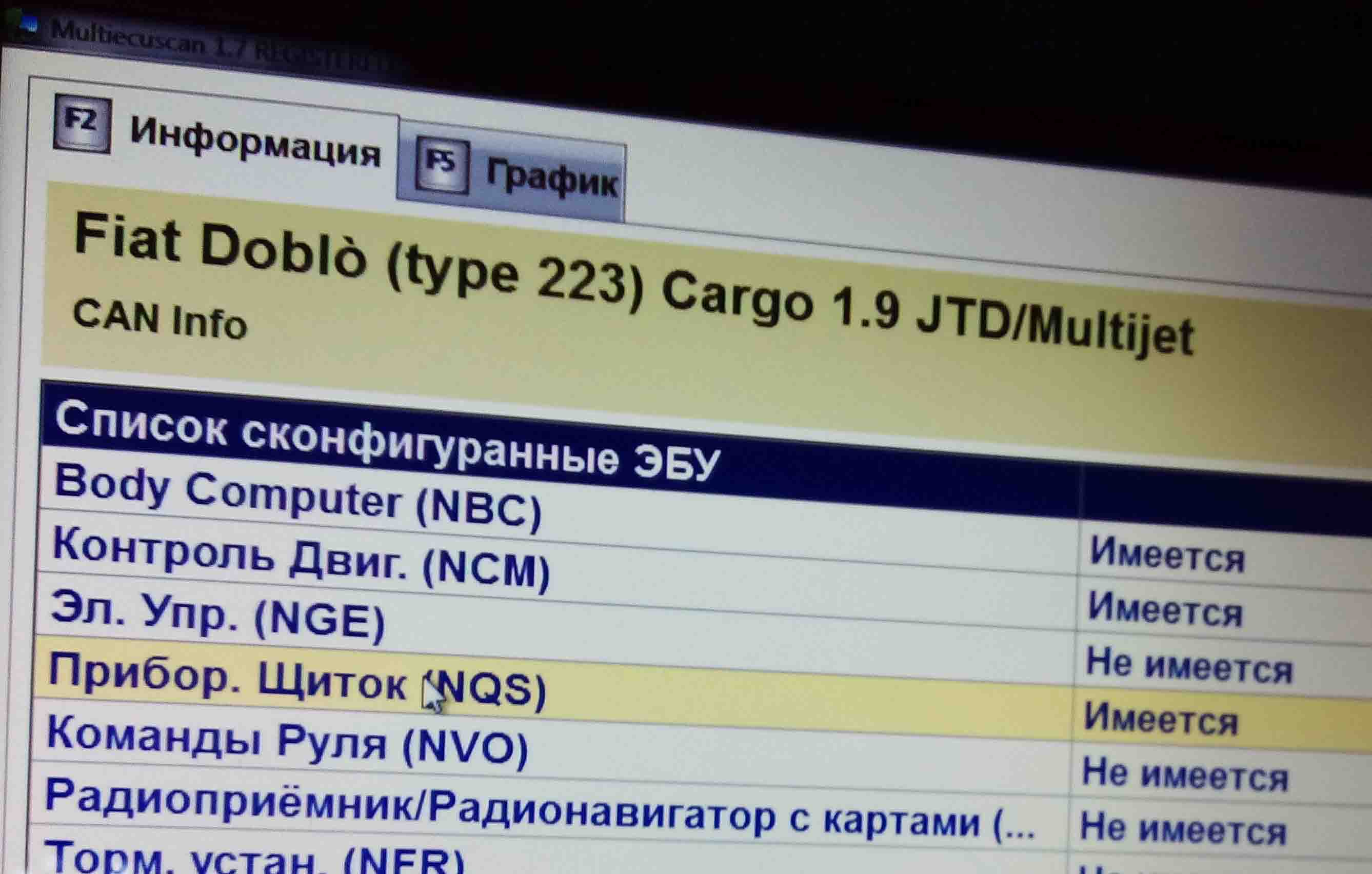 Зашел в раздел кузов/ can info (2 фото прилагается) пишет приборный щиток имеется, а ниже в списке ЭБУ которые ответили пришет приборный щиток - не активны...