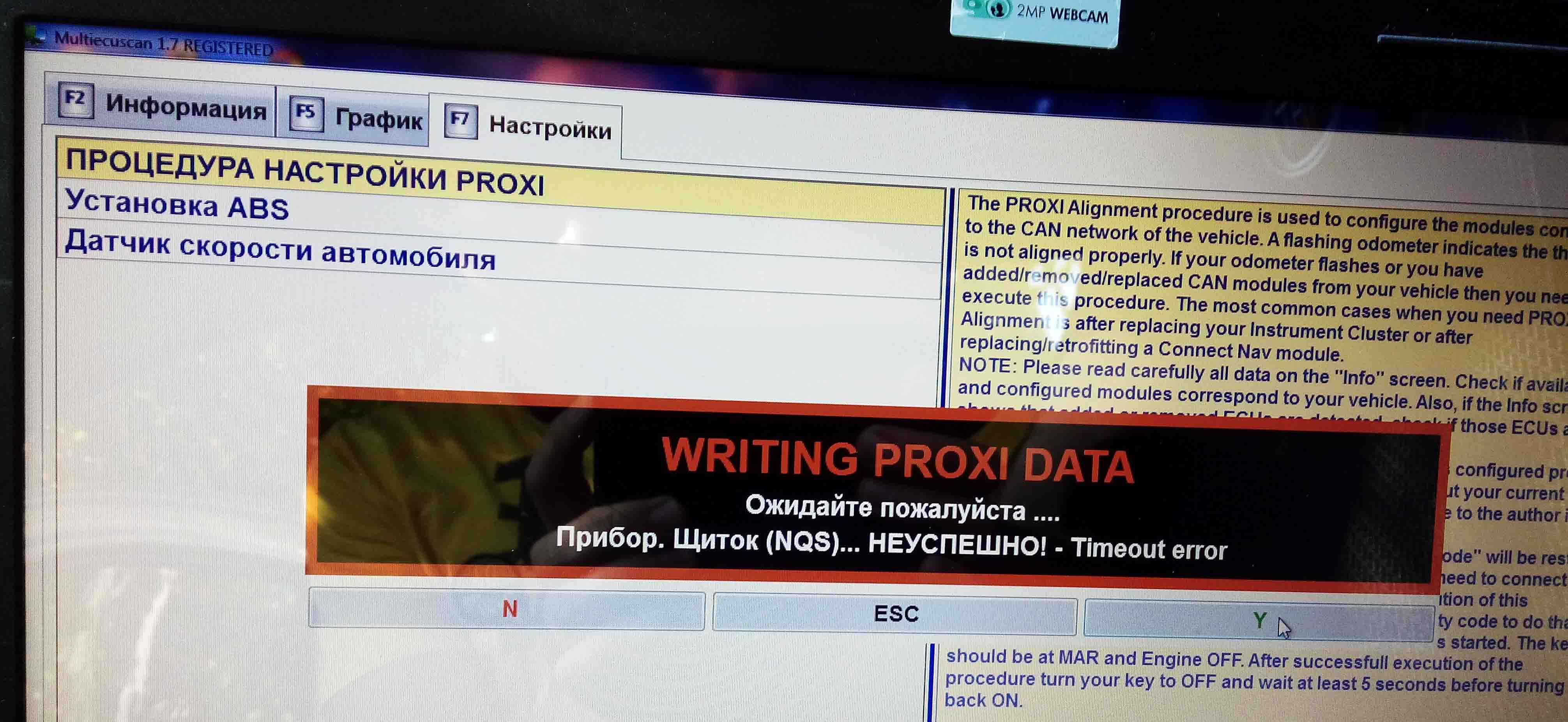 Пробовал через мультискан в разделе кузов/настройки/процедура настройки PROXI, к Body Computer подключилось, а на приборке выдало ошибку