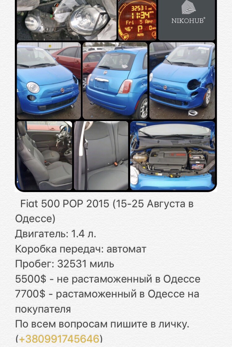 Фиат 500 15 года 50000 км.