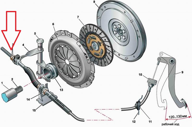 Через те що трос був підкручений до кінця а щеплення не було взагалі, педаль провалювалась