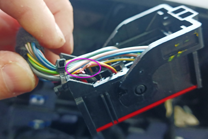 Как я уже писал, один из неочевидных моментов при установке этой магнитолы — наличие своего внешнего усилителя мощности у Фиата (вроде как, за обшивкой левого борта багажника). Этот усилитель постоянно подключён к +12В, и, соответственно, находится в "спящем режиме", если "зажигание" не включено. Для того чтобы он включился и "звучал", нужно подать отдельный сигнал (+12В) на 41 вывод большого разъёма (красный провод с жёлтой полосой). Я взял выходящий из "планшета" синий провод с маркировкой "ANT", и подпаял к нужному проводу.