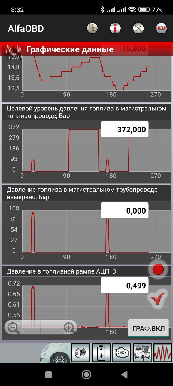 Ну так по графіках же видно, що коли двигун вимагає 370 бар, то по факту там нуль. Як же ж він має запуститись, без палива? Шо він має впорскувати, якщо не розвивається тиск?