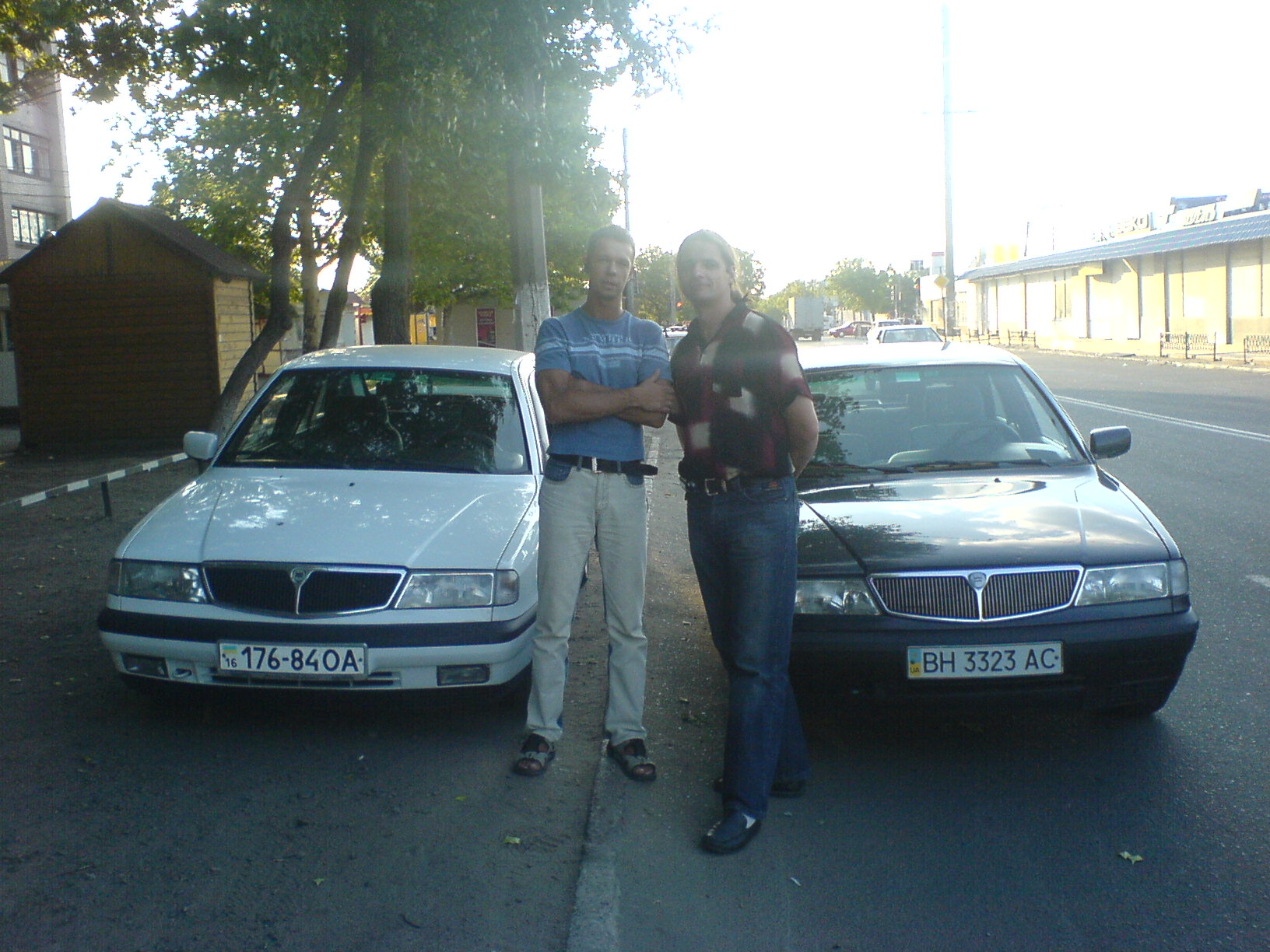 | я в белых брюках и миней майке, моя лянча черная, и Леха, со своей белой. Одесса. прошлый год |