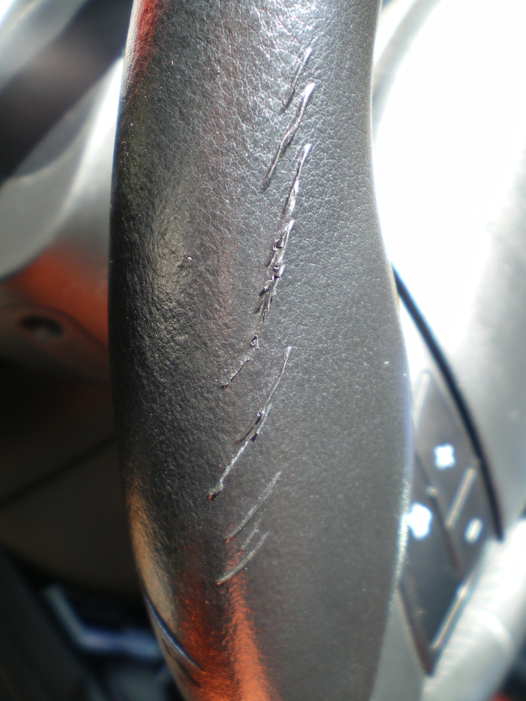 А вот и мой вариант проблемы (а я. глупый, новую ветку начал...) у меня на руле стали появлятся "морщины" (см. фото) в тех местах, где держу руки. Первые появились слева примерно в конце осени прошлого года, а теперь и справа но у же явно после cолнечной активности