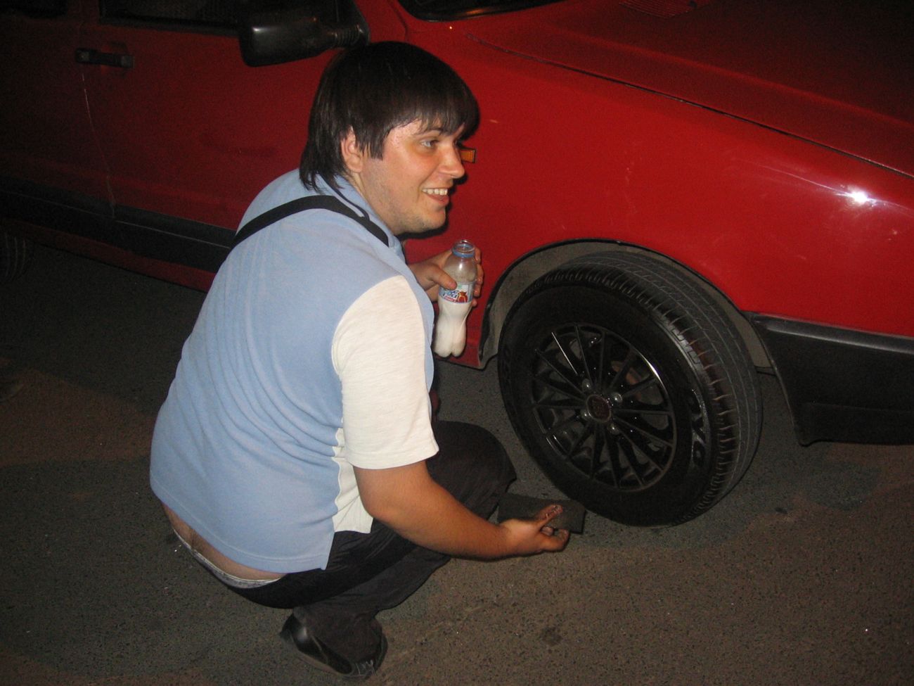презерватив и бутылочка с белой густой жидкостью... И этим всем делом мазать покрышки... Laughing Laughing Laughing