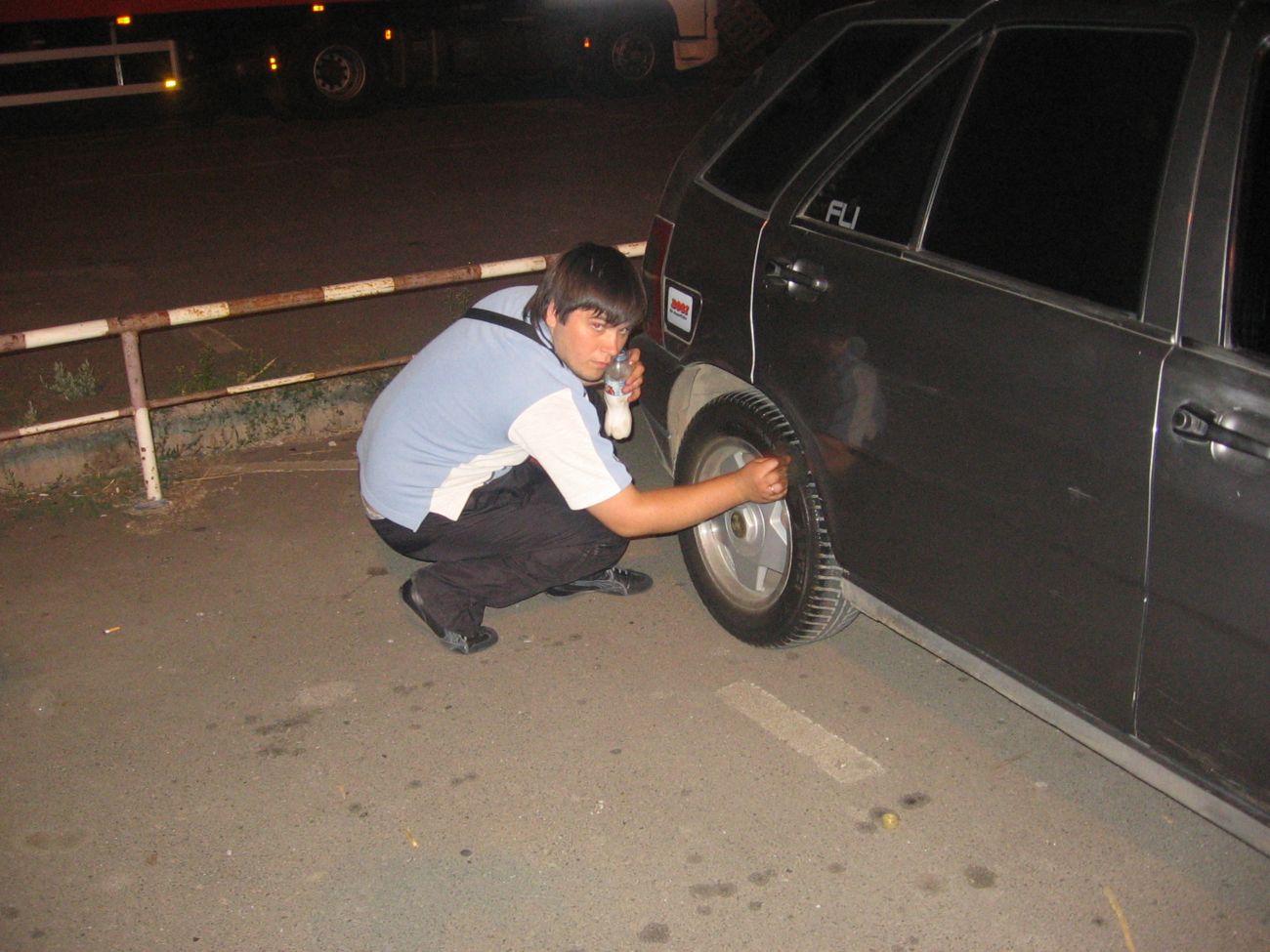 презерватив и бутылочка с белой густой жидкостью... И этим всем делом мазать покрышки...