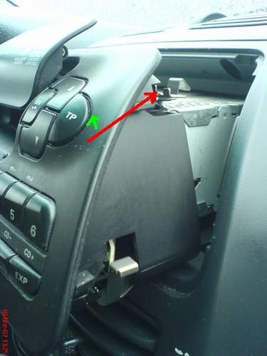 Береш ножик,и нащупываеш защелки,поднимаеш её и одновременно тянеш радио к себе,сначала на одной,потом на другой стороне,потом нащупываем верхние,