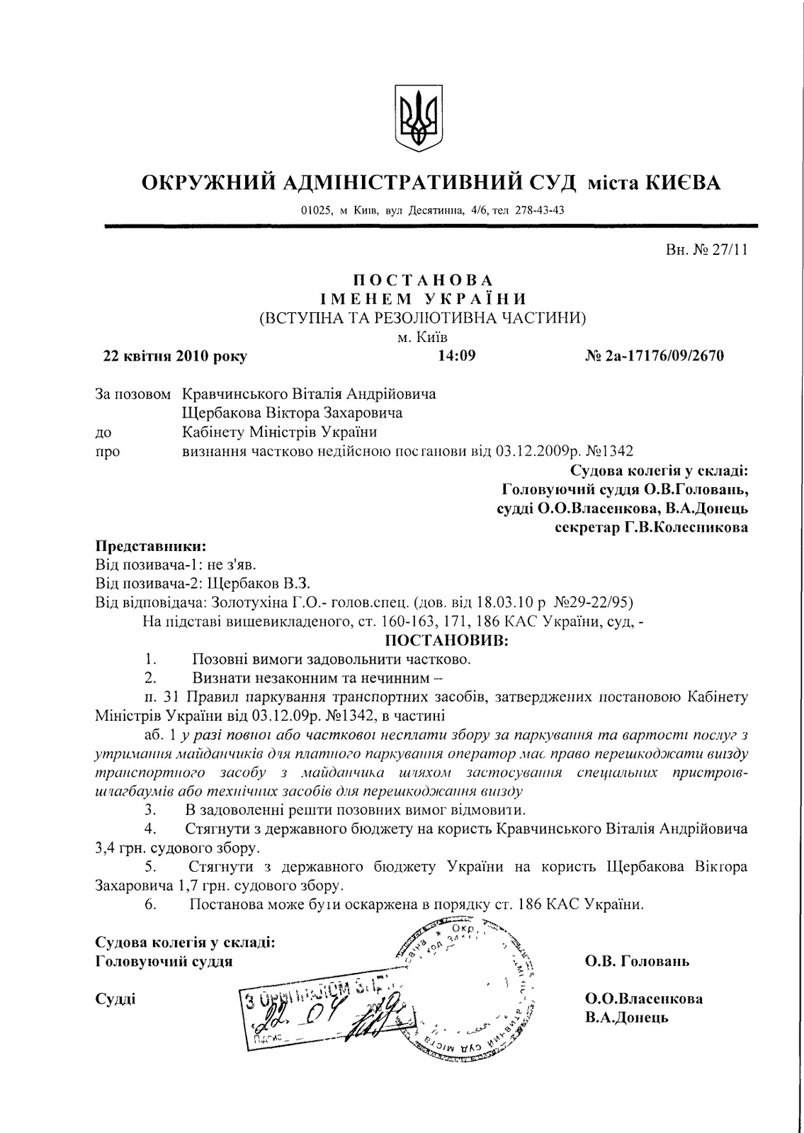 Вчера окружной админсуд Киева вынес постанову, которой запретил блокировать автомобили любыми техническими средствами, даже в случае неоплаты парковки.