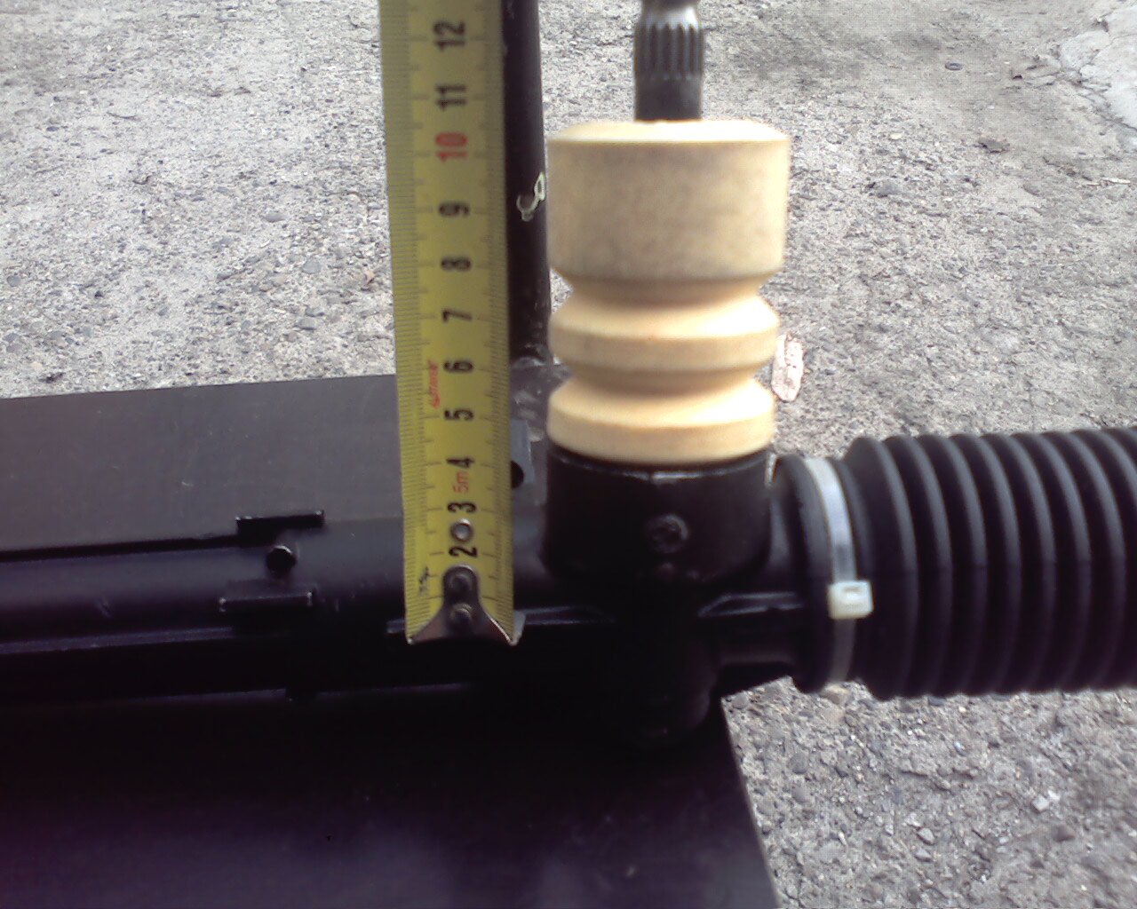 В экзисте этот кусок пластмассы стоит 5$, но надо купить сразу два . Сходил сегодня в магазин отечественных железок, подобрал отбойник задней стойки от ТАЗ-110. Хорошо подошёл по всем диаметрам, заодно своей эластичностью скомпенсирует размер по высоте и прижим рейка-кузов.