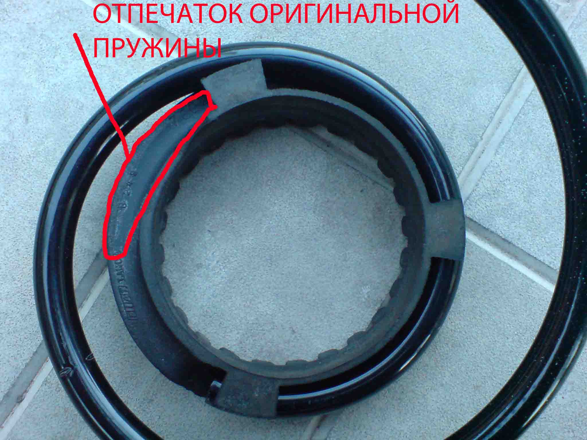 На картинке на резиновой проставке виден след выработки от оригинальной пружины и видно насколько меньше участок соприкосновения новой пружины и проставки.