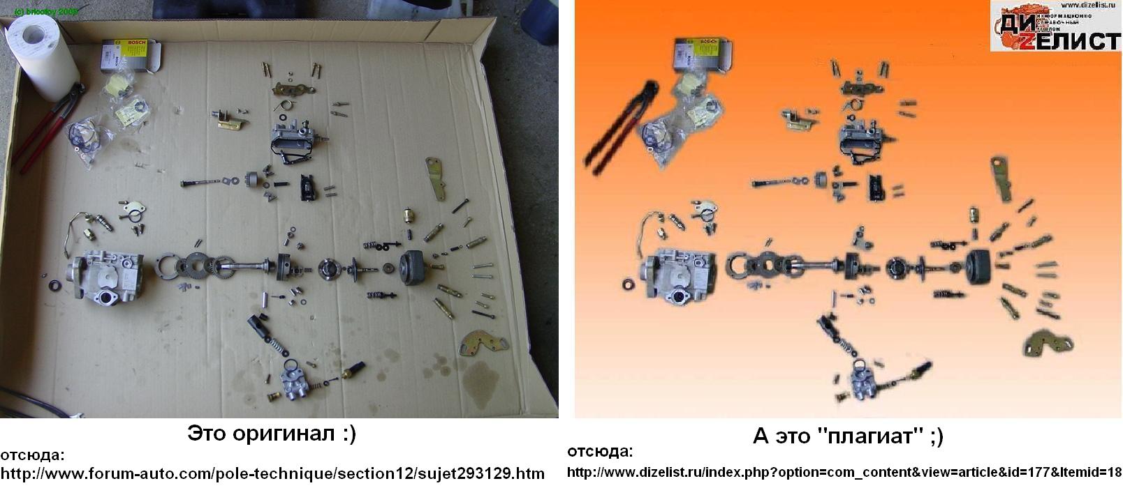 Я свій насос ремонтував без фоток, без форумів і без будь-яких вчителів. Почитав ось цю літературку "Хорошая книжечка с описанием ТНВД (с предпросмотром страниц, постранично): http://cx.podolsk.ru/xm/docum/lucas/ а здесь она же, только целиком и в формате djvu: http://depositfiles.com/files/79a9tqy4k ", ввімкнув мозок та й почав розбирати Smile