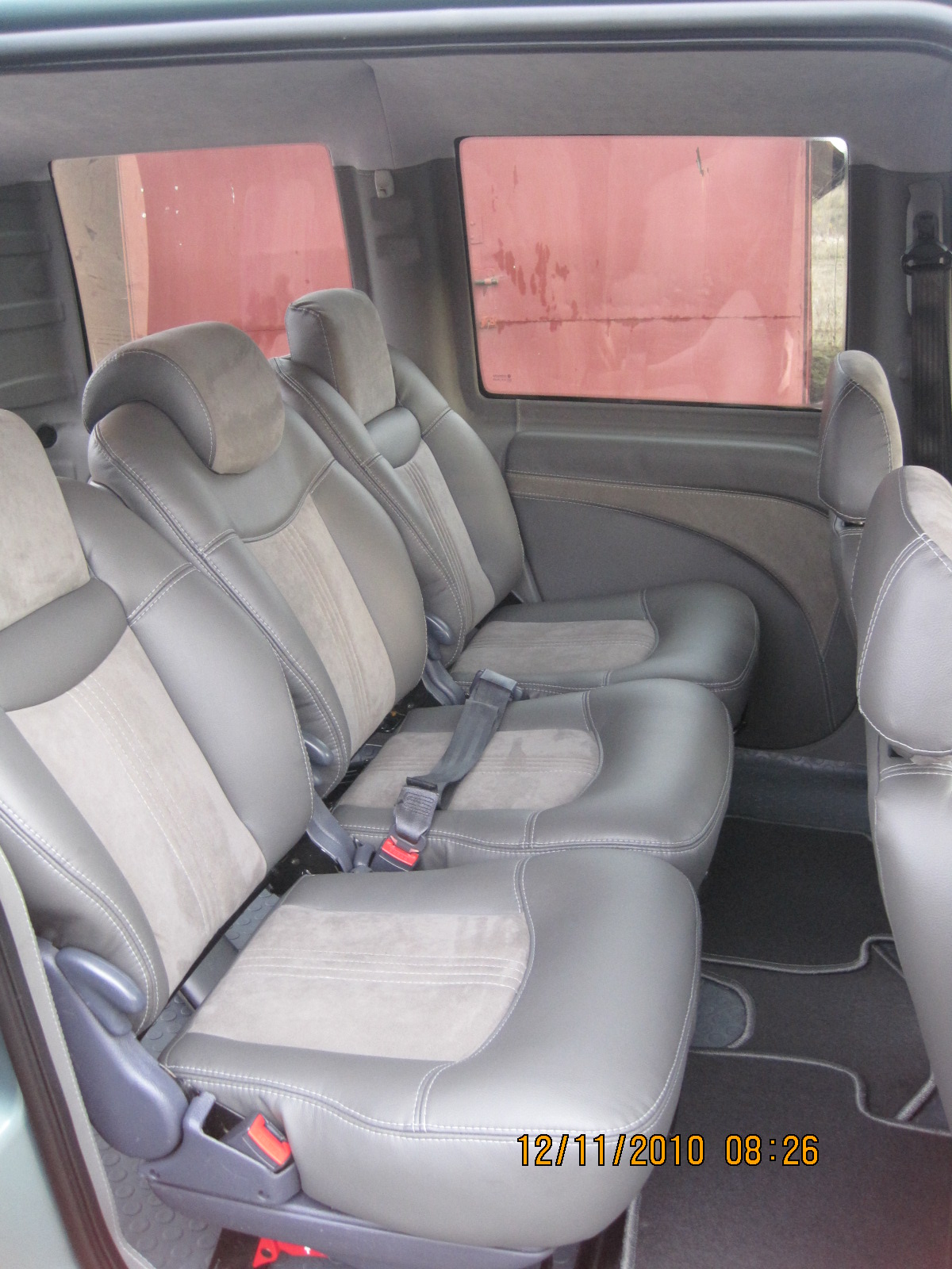 Обшивался у себя в Ровно, у давно проверенного человека. Сидушки от Рено Еспас, все спинки полностью ложатся, ездят на салазках, ну и само собой кувыркаются вперёд.