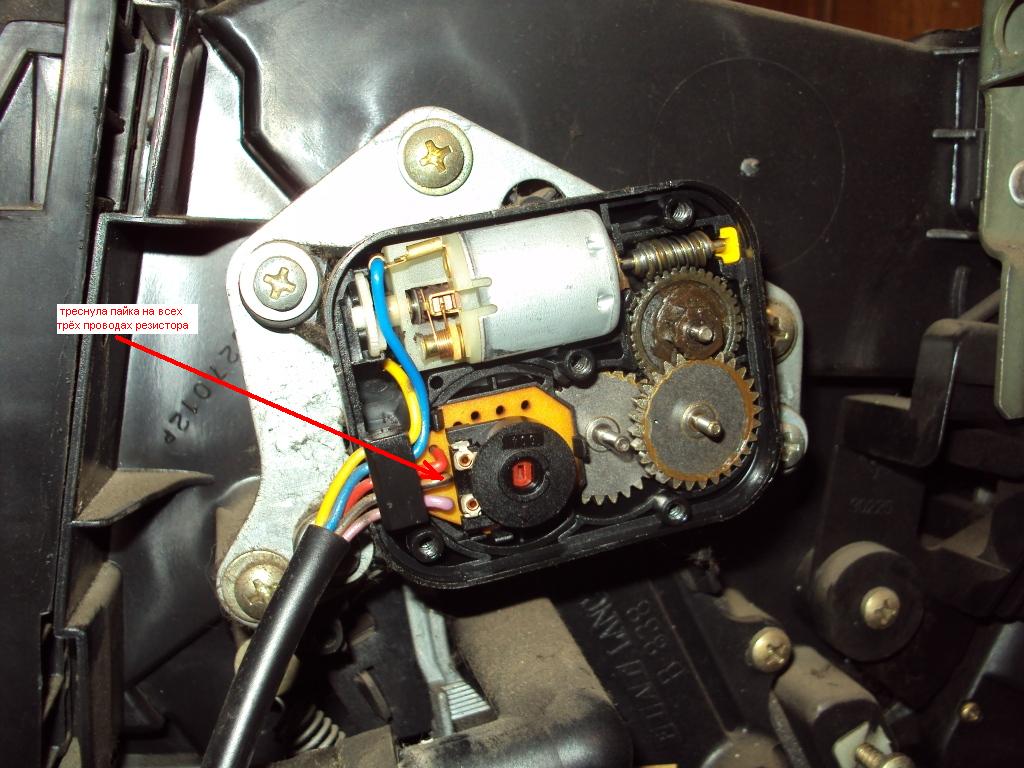 Пока ничего не получилось с восстановлением привода заслонки "салон/улица". Сделал, как предлагалось в ссылке штивты (поставил медные, из ножек резистора), и саморез длинный поставил. Однако, силища у редуктора дурная, он эти штивты на шестой раз провернул и сделал из них свиные хвосты... Не удивительно, что заводской квадрат обламывается.