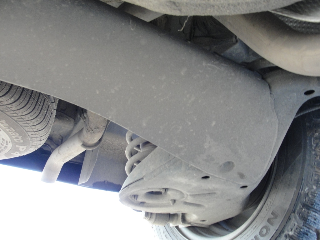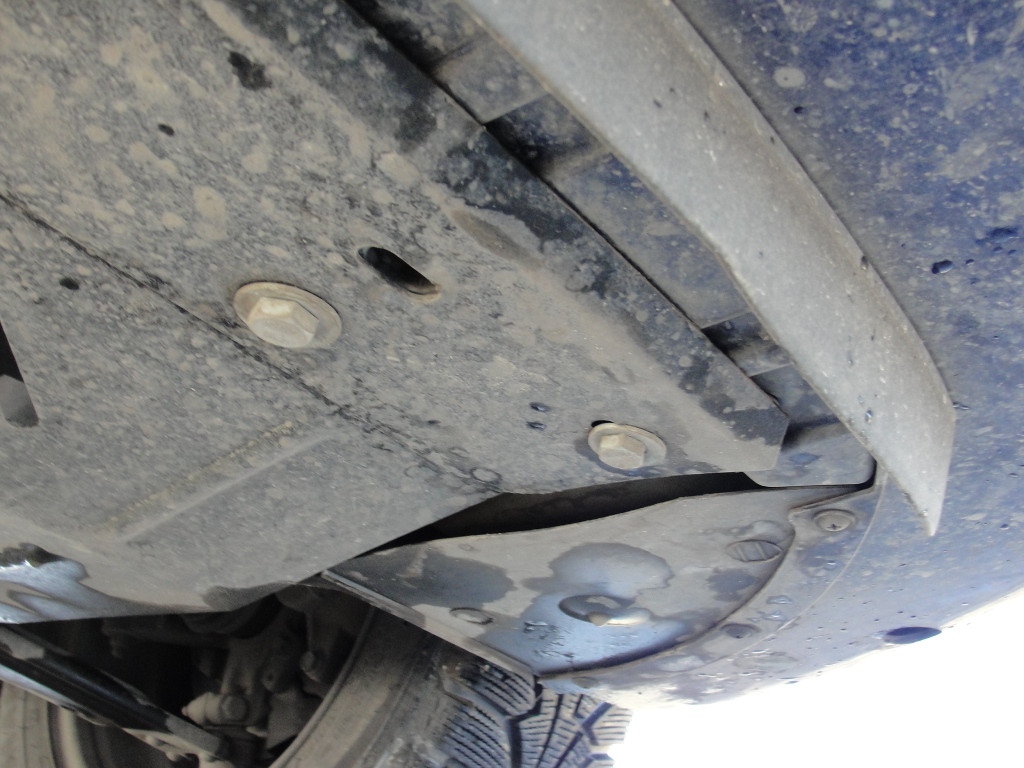 Спереду захист кріпиться трьома болтами до пласмасової планки, але вона достатньо товста щоб його утримувати. Ззаді два болта. Захист закриває все і в тому числі коропку передач. |