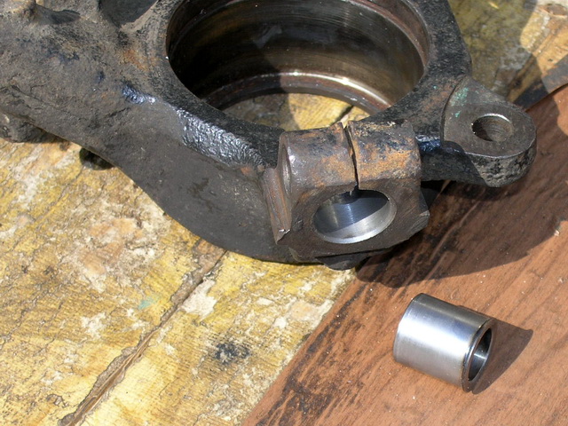 Так, як був розбитий отвір під шаровий палець на ступиці прийшлось гільзувати. Спочатку розточили отвір до чистого , виготовили втулку вставили і з середини прихопили сваркою, болгаркою прорізали паз і просверлили отвір під стягуючий болт. Все працює. Лишилось питання, якого діаметра має бути шаровий палець? На старому ричагу був 19мм. на новому 17мм.