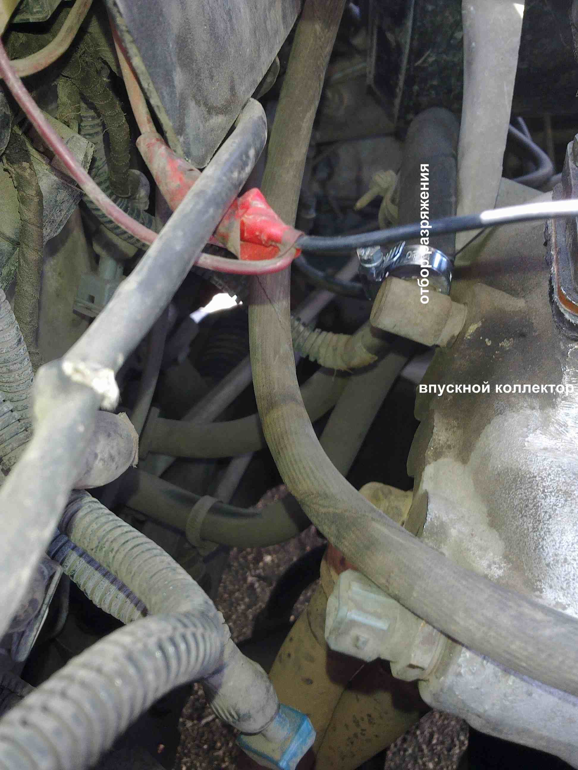 далее...эта вакумная трубка к колеектору присоеденена не напрямую, а через тройник. куда идёт третий конец-я не знаю, кажется к блоку абс...