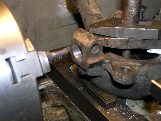 | Коли розточували цапфу,ослабили,тіло стало тоньше,обережно із затягуванням болта,щоб не лопнуло вухо-було таке.прийшлось міняти цапфу.Нехай служить!