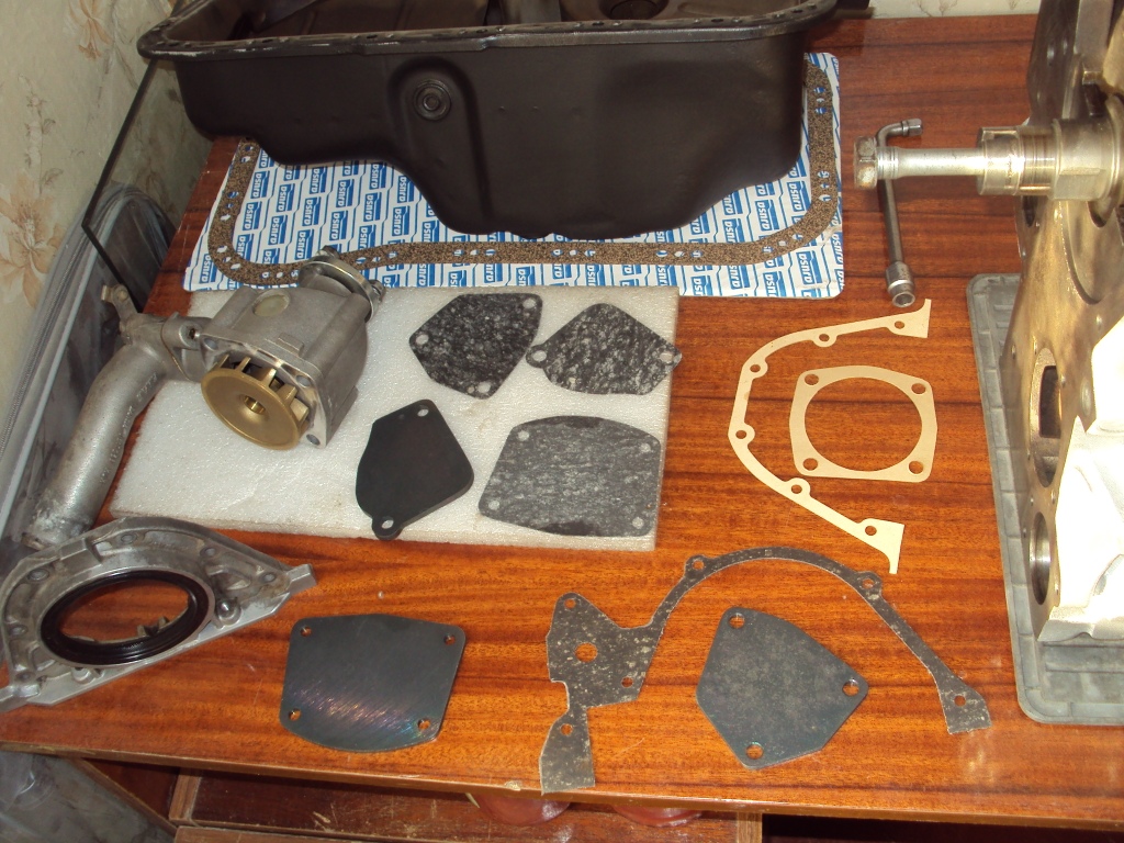 Все прокладки- маслонасоса, 2 передних заглушки балансиров, помпы, заднего фланца сальника КВ, заглушки рубашки охлаждения и поддона- посажены на герметик. Резьбы болтов перед сборкой покрыты ЦИАТИМом. Привалочные плоскости перед сборкой протёрты ацетоном.