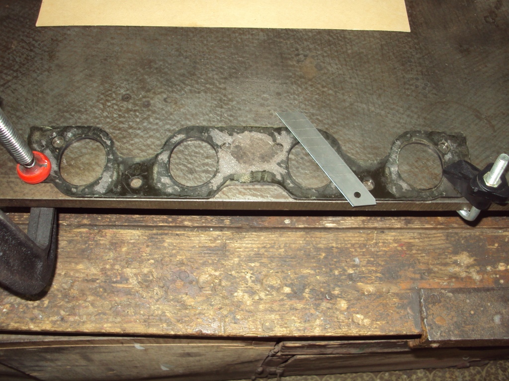 Изготовленные три года назад из паронита 0.5мм прокладки впускного коллектора прилипли намертво к эбонитовой проставке. Удалил лезвием, затем на плите отшлифовал. Новые пришлось вырезать из полишпана- паронит закончился. В результате отказа от нижнего паразитного подшипника необходимо доработать нижнюю часть металлического кожуха- ремень цепляет за отбортовку. Заодно закрыть отверстие, где раньше был натяжитель ремня балансиров. Тряпкой, что ли, заткнуть