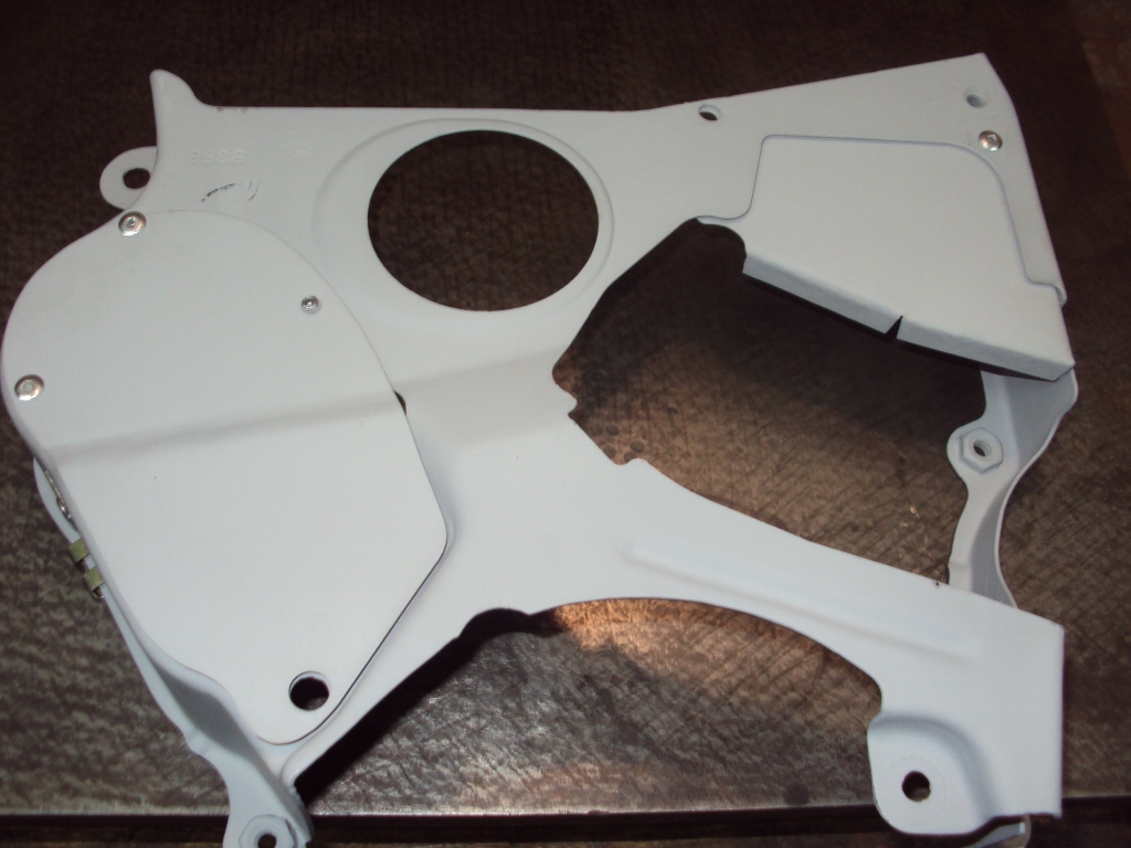 Нижняя часть металлического кожуха ГРМ доработана- изготовлены пластины, закрывающие дыры бывших балансиров, удалена отбортовка в районе бывшего натяжителя, об которую ремень ГРМ при отсутствии паразитного подшипника начал бы шаркать.