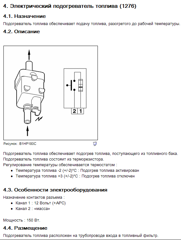 Уже даже скатал себе программу по электросхемам, но толку в цепочке прохождения сигнала так и не вывел (не хватает знаний). Может кто-то подскажет: хочу купить себе проточный подогреватель топлива и чтобы не колхозить с реле, кнопкой и т.д. можно ли подключить данный девайс к этому разъему на штатном топливном фильтре?