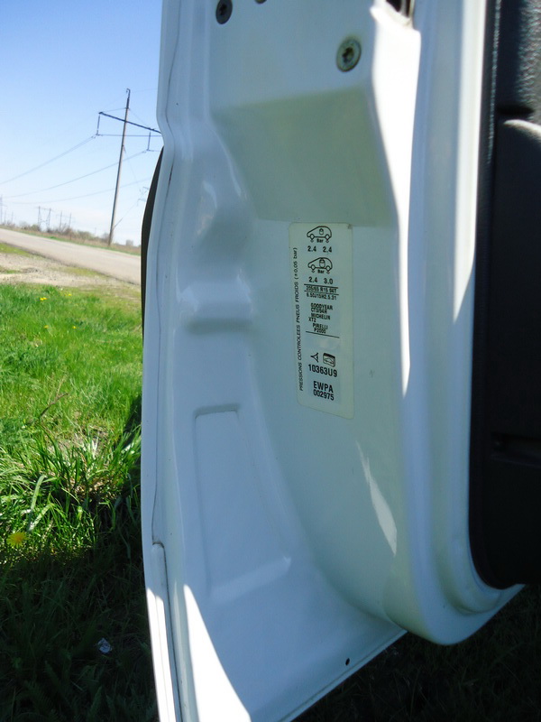 Сори за якість фото. На водійській дверці наліпка з інформацією тиску в шинах (якщо авто не красилося). 2,5 по всіх колесах, якщо авто гружене, то в задніх - 3.0. Я качаю 2,5 грузів не вожу.
