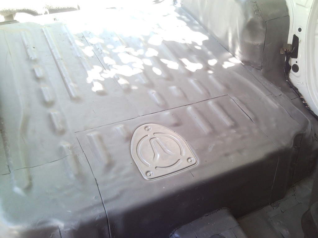 далі шумоізоляція, обклеював арки, двері під картами, все дно, крім передньої частина, там є заводська, по матеріалах: