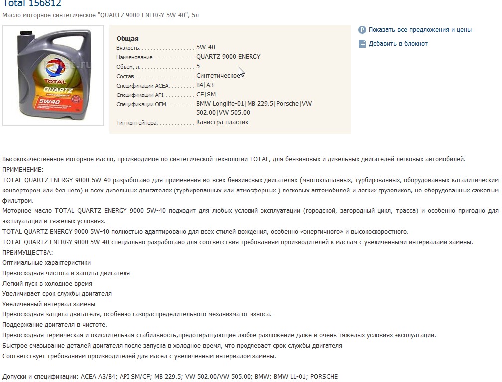 Собі замовив пару каністр: Масло моторное синтетическое "QUARTZ 9000 ENERGY 5W-40", 5л - ціна 279грн, перевага ще в тому що не потрібно за доставку платити.