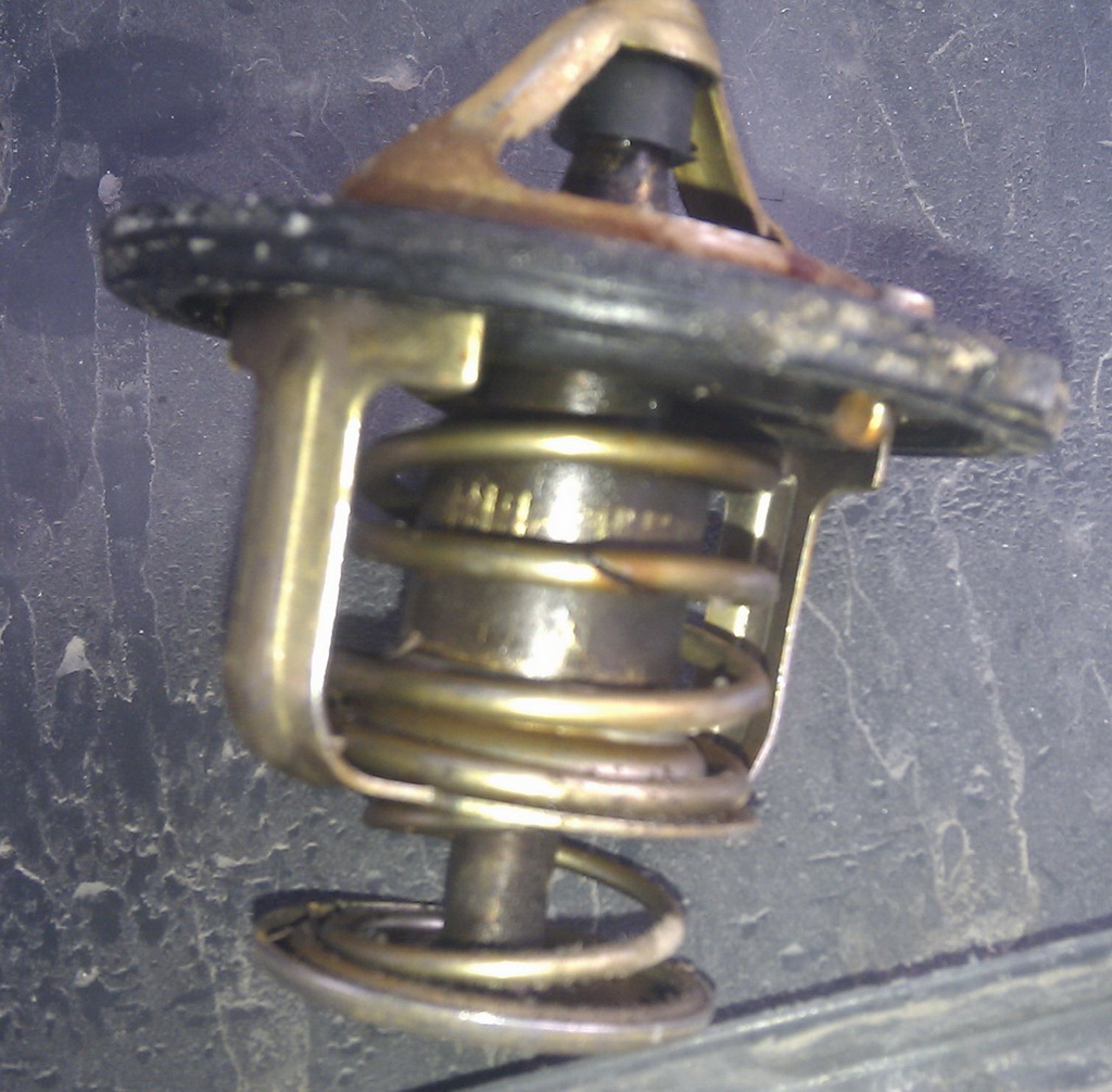 поменял термостат, старый видно на фото, лопнула пружина, пока не проверял что за результат, но пока только прокачал систему через пробку на радиаторе, при включении вентилятора из печки опять был холодный воздух..