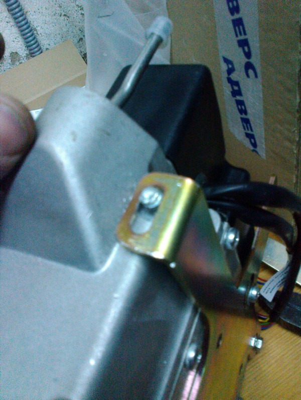 Боковое крепление штатно предусмотрено саморезами (в комплекте), но так получилось, что саморез пошел под углом, лопнул са и облоил бортик у колодца, куда вворачивался, но свою функцию он более-енее выполняет, то есть подогреватель к пластине сбоку фиксируется. Дополнительно средний болт из подогревателя вывернули и через шайбу притянули к пластине (на фото видно).