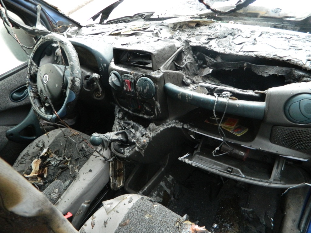 Кузов не деформований, лише в районі капота, бо пожежники відкривали капот ломом, в салоні обгоріла лише обшивка в районі передніх сидінь, і верхня поличка також згоріла, плюс сліди плавленої пластмаси. під капотом все вигоріло крім металевих деталей.