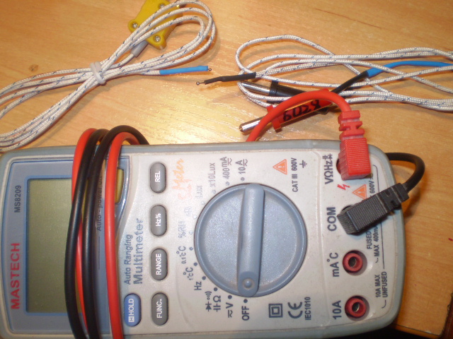 Вот те капельки на концах проводов и есть термопары. ФИО тестера не называю, т.к. их много- "Мастеч" и проч.