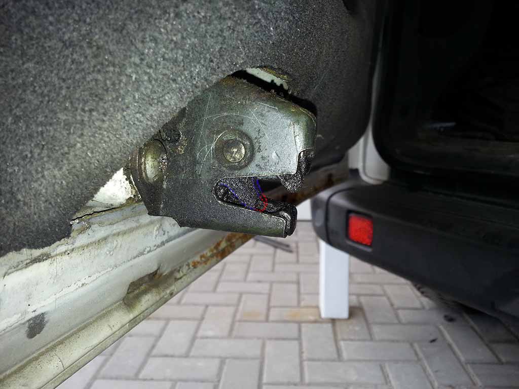 Заворот механизма замка может быть по причине не отрегулированных петель, тех, которые крепятся к полу и потолку салона. Петли сильнее, чем нужно, выдвинуты к наруже авто. Еще не плохо было бы отрегулировать тяги механизма замка. Посмотреть, не отламались ли пластиковые направляющие.