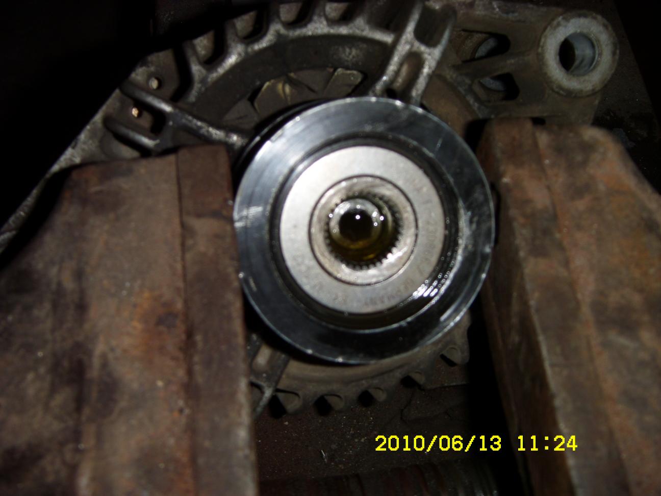 обгінні муфти ставляться далеко не на всі генератори , я свій звичайний шків замінив , він такий з завода стояв, нічого не було колхозено , поставив обгінну муфту (при курсі 8 грн\у.е. вона була біля 600 грн) , знімав старий шків майстер, зняв досить швидко але застосовував велике плече щоб відкрутити