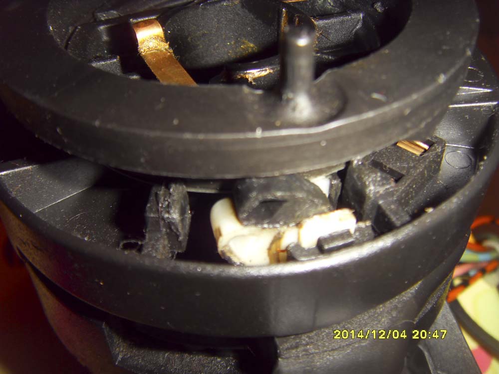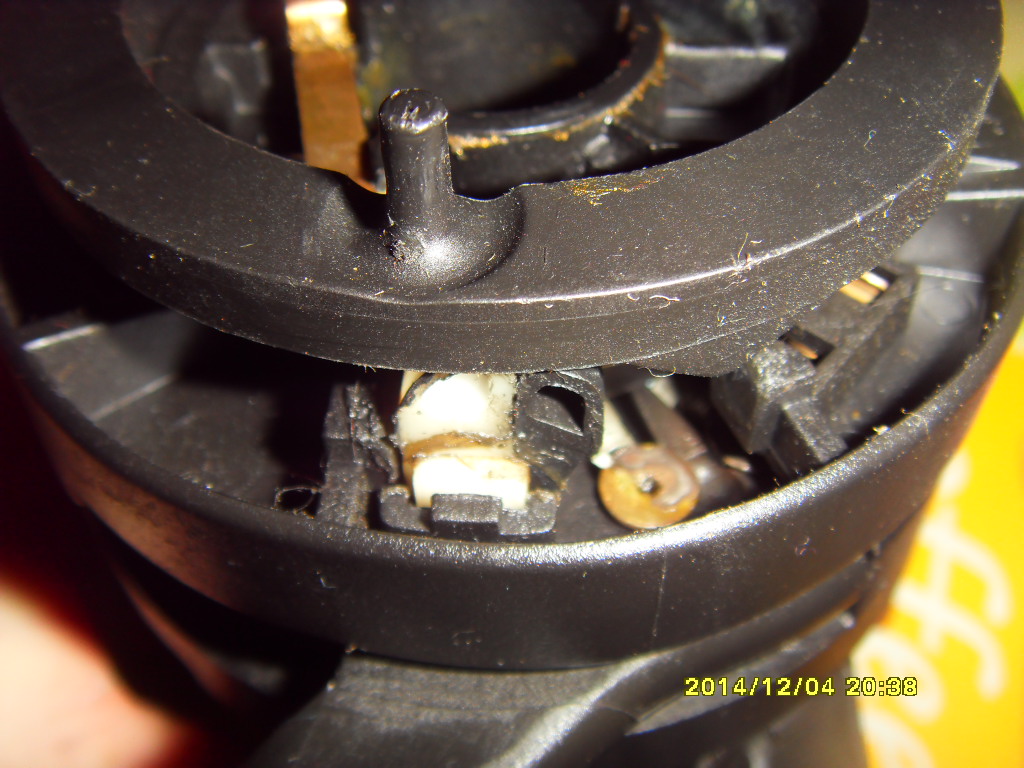 Возврат ещё надо умудриться собрать неправильно.Беленькая хреновинка вставляется в крышку, а крышка одевается на корпус переключателя.Все работает.