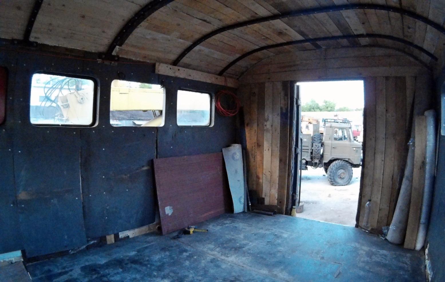 Работа кипит. Снят мотор, ждем заказанные запчасти. Тем временем кунг превращается из "сарая" во вполне пригодное для ночлега и работы помещение.