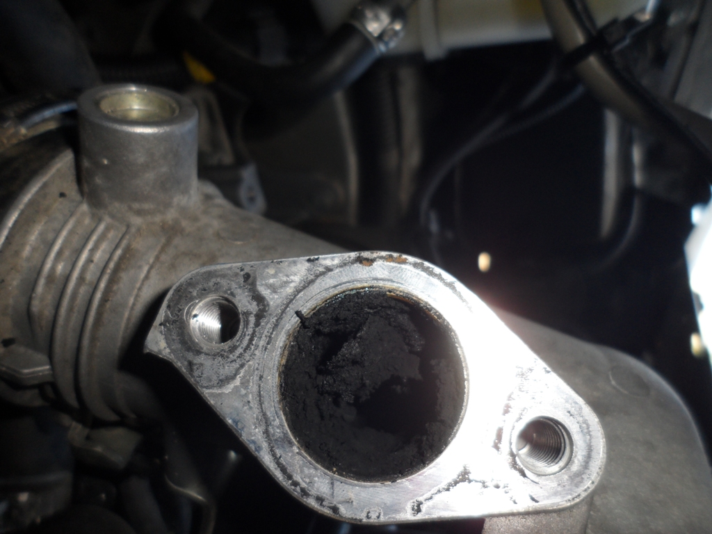 В общем к 70000 стала пропадать тяга, особенно на холодную. При переключении на пониженную передачу появился провал в разгоне. Посоветовшись с StasBar пришли к выводу, что это скорее всего EGR-клапан. Хотя Fiatecuscan никаких ошибок не показывал. Решил я его чистить. Пришлось снять лоток АКБ, чтобы был доступ. Открутил две гофрированные трубки, а потом и сам EGR и увидел вот что!
