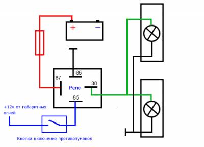 Доброе время суток любители и знатоки ! Подскажите пожалуйста новичку кто то связывался с проводкой противотуманок с нуля? У меня ни проводки заводской нет ни релюшки. Хочу подключить чтоб работали только с габаритами. Подскажите к чему подключать реле и какое нужно(слышал подходит от жигулей), от куда запитывать и вообще к чему подключать контакты от релюшки. Может схемка у кого то есть, один раз нашёл её тут и компьютер выключился и по сей день не могу найти...У меня скудо 1.9 Д 2001 года... Как писали выше и меня обделили таким удовольствием как заводская проводка на передние ПТФ. Помогите пожалуйста разобратся...