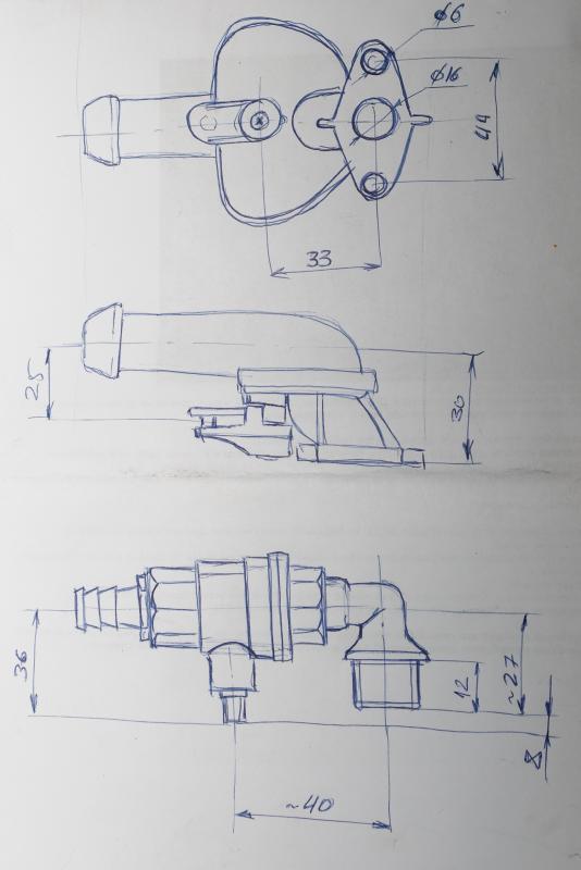 единственное отступление - не стал спиливать резьбу на одном из плечей угольника, для того, что соблюсти такое же расстояние между центром отверстия и осью краника. (у оригинального краника оно 33мм. у моего 40мм)