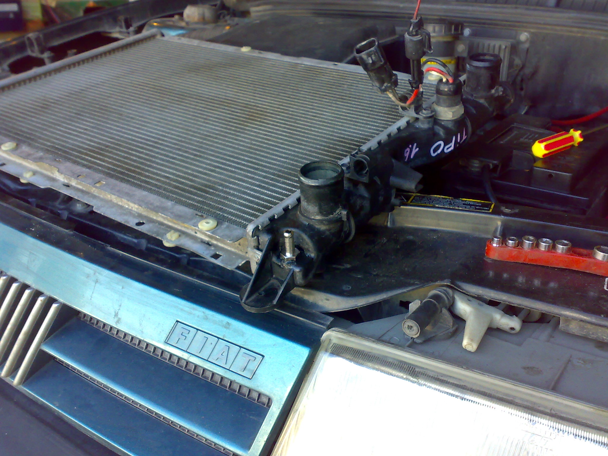 штуцер вкручен в короб радиатора(было сденанно отверстие в коробе,с последующим нарезанием резьбы) + сверху запаяли пластиком для надежности